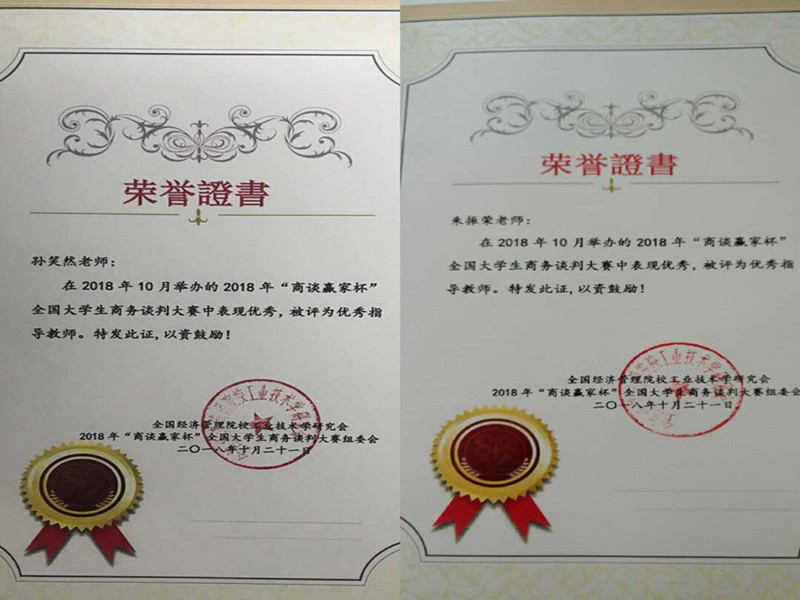 2018年10月20-21日,3044am永利集团商务谈判队参加了在宁夏银川的北方民族大学举办的全国经济管理院校工业技术学研究会沟通与谈判委员会第六届学术年会暨2018年“商谈赢家杯”全国老员工商务谈判大赛。孙笑然老师作为指导老师带队参加。