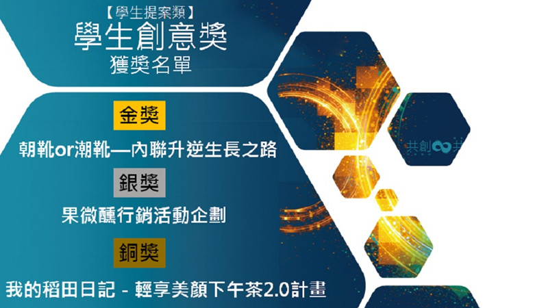 本次赛事从10月初启动,主题是企业、消费者和社会实现“共创、共享、共好”。获奖团队由跨学院、跨院校成员组成;指导教师也体现了学校与企业合作的性质。从团队组建、选题、头脑风暴、成员分工、作品整合到完善,每个团队成员精诚合作,互相督促,最终交出了令人满意的答卷。