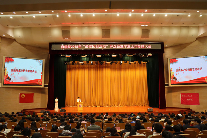 樊江涛副书记进行总结发言,他首先向获奖的团支部、班级、宿舍以及同学个人表示了祝贺,并对一直策划商院各类活动的同学和老师表达了感谢。他指出,在共产党的领导下,40年的改革,中国由富起来到强起来,并希望同学们自觉坚持党的领导,全面深化共青团改革,强化共青团育人职能,要努力成为有社会责任人、国际视野、创新精神的商科人才。