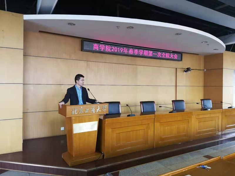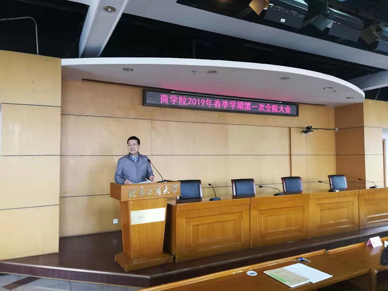 2月27日下午,学院在综合楼三层报告厅召开2019年春季学期第一次全院大会,大会由王国顺经理主持。